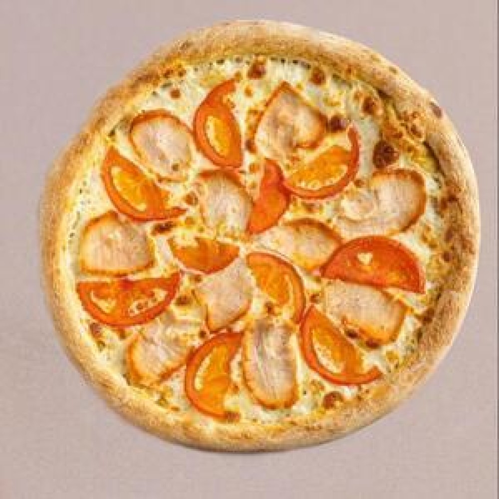 Грудка куриная копченая, помидор, сырный соус, моцарелла