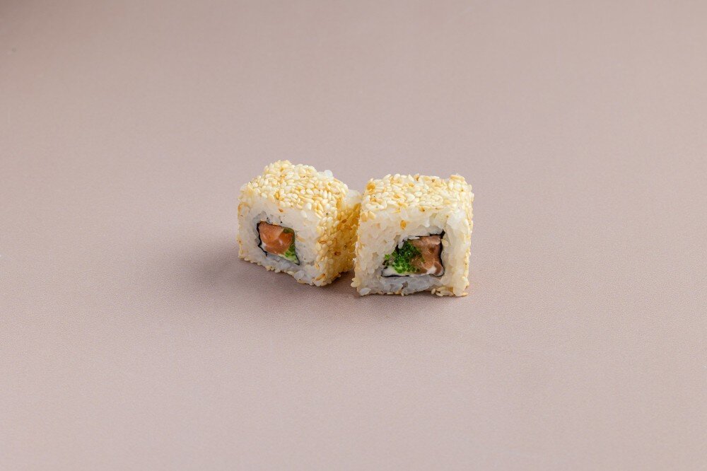 Рис, лосось, икра тобико, кунжут, сыр плавленый "Виола", капуста нори