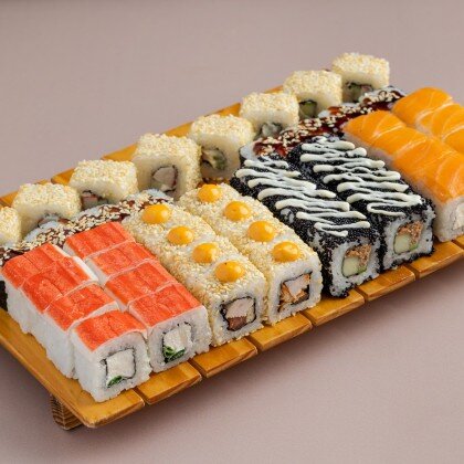 Гейша Филадельфия маки Киото Эби каиган Рок-н-ролл Хакаси маки Харакири ролл Сушка сяке Сушка сяке кунсей Тортильяс сяке кунсей