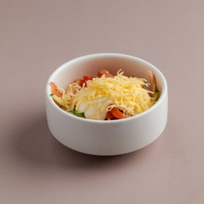 Куриное филе, огурец, яйцо, чернослив, грецкий орех, майонез, сыр
