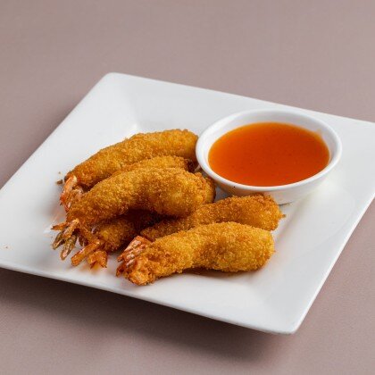 Острая креветка в темпуре с соусом манго-чили