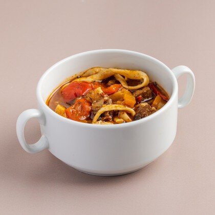 Филе куриное, лук, морковь, лапша домашняя, зелень, специи