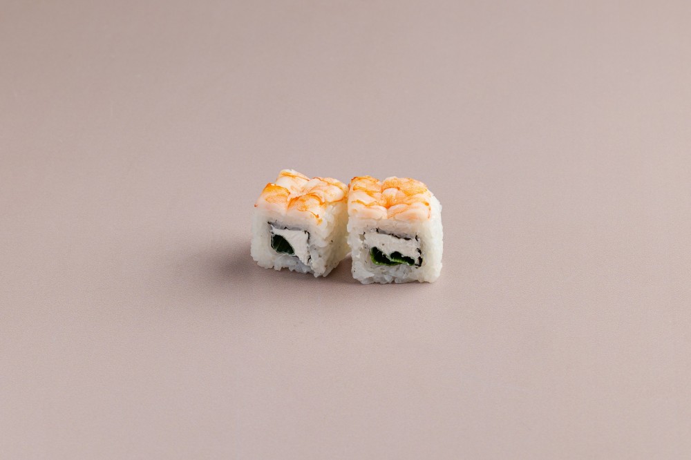 Сыр творожный, лук зелёный, креветка тигровая