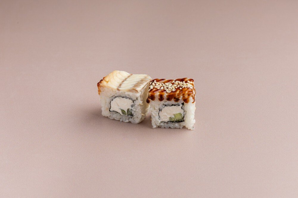 Сыр творожный, угорь, огурец