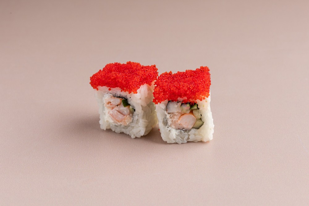 Сыр творожный, огурец, креветка тигровая, икра тобико