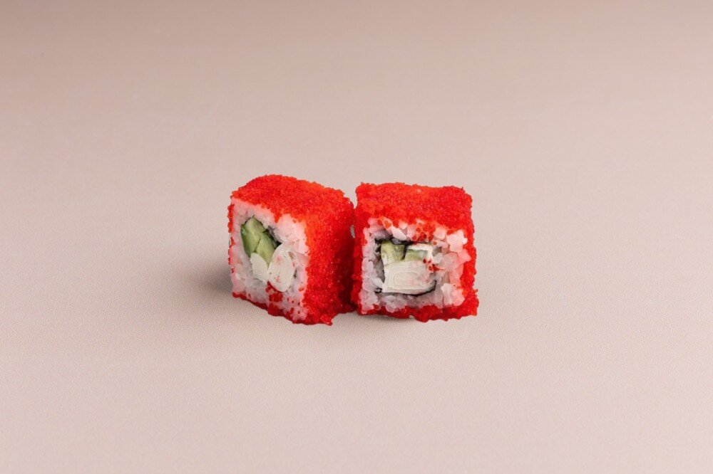 Крабовая палочка, майонез, огурец, икра масага