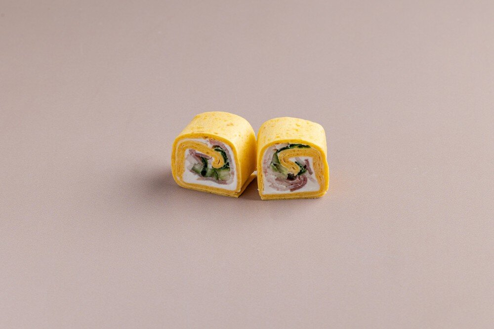 Мексиканская лепешка, сыр творожный, зеленый лук, огурец, бекон