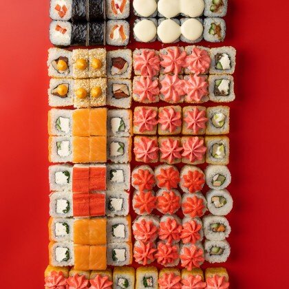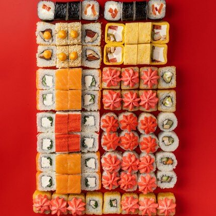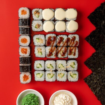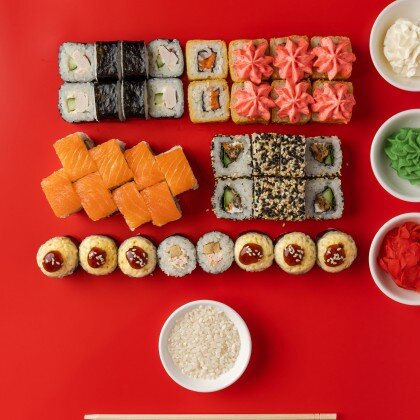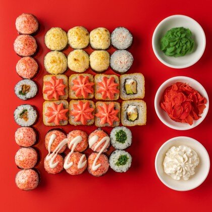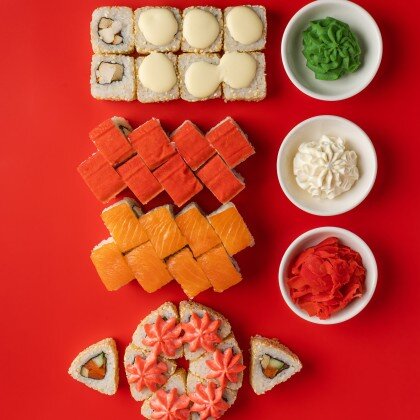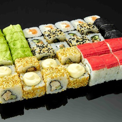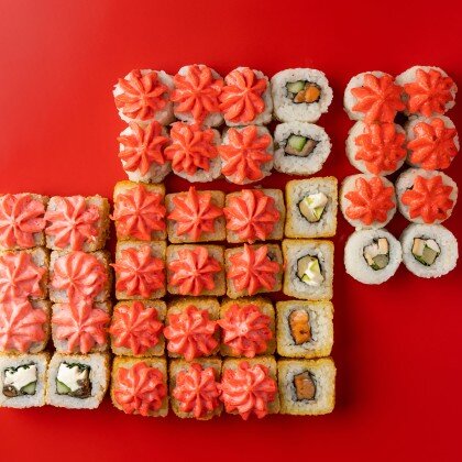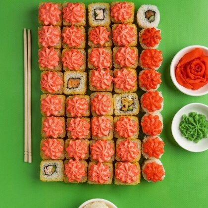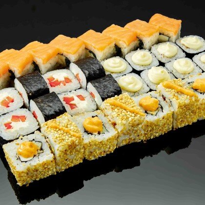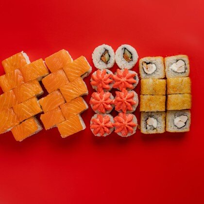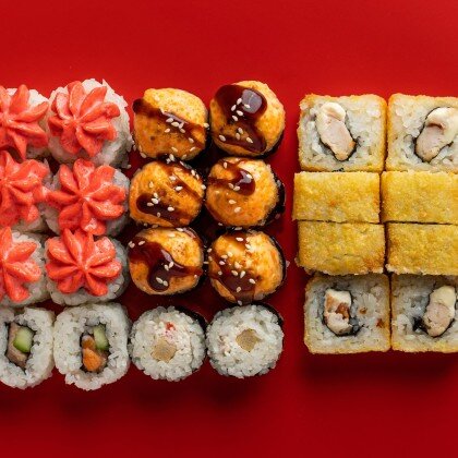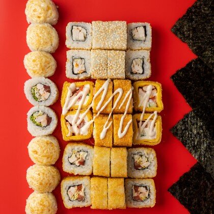 3 порции горячих роллов: Лава томаго темпура - жареный ролл с японским омлетом; Эби фри маки - жареный ролл с креветкой; Темпура кунсей - жареный ролл с курицей.