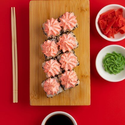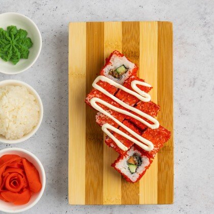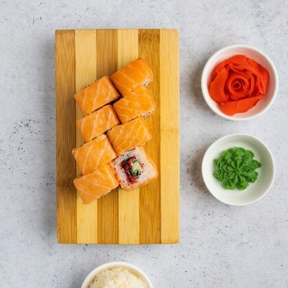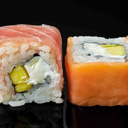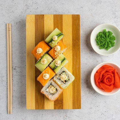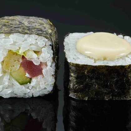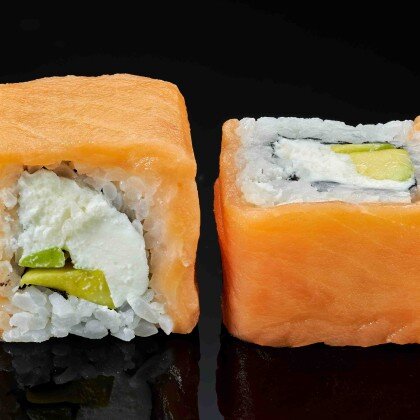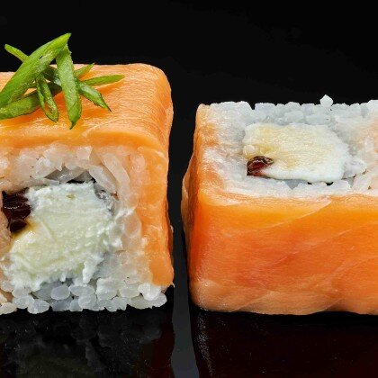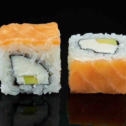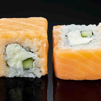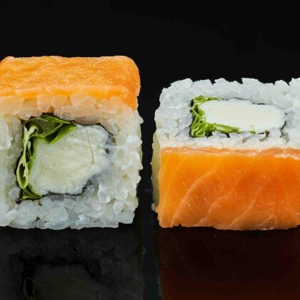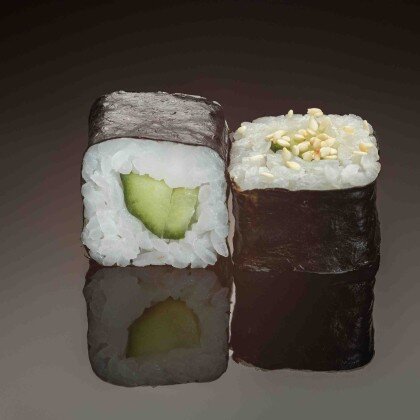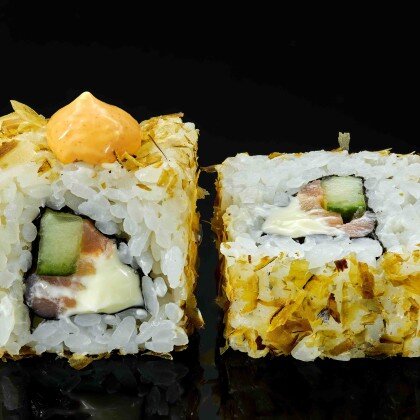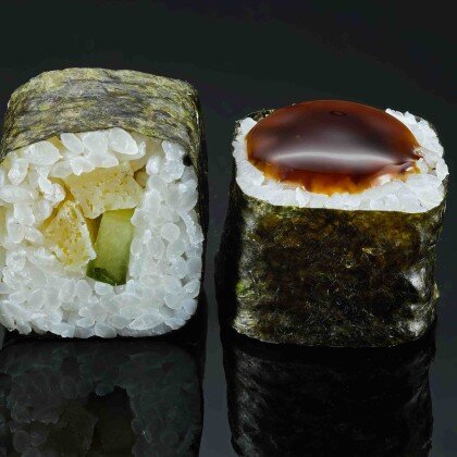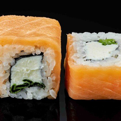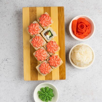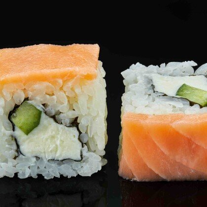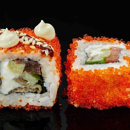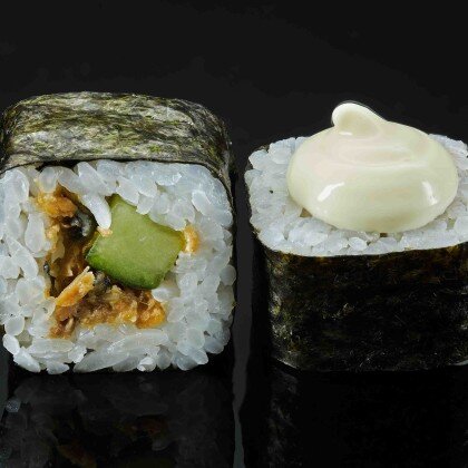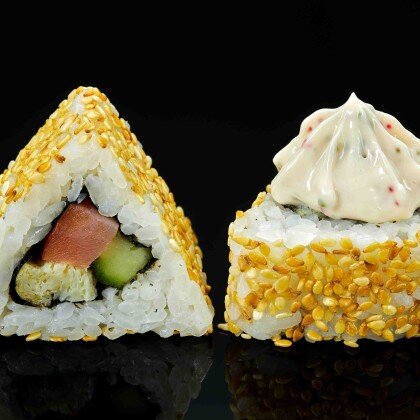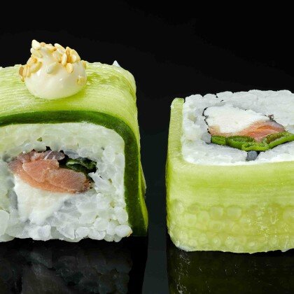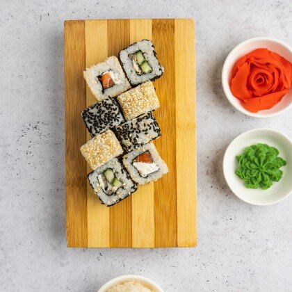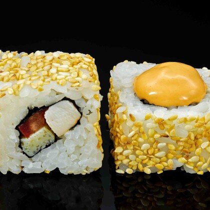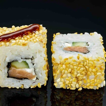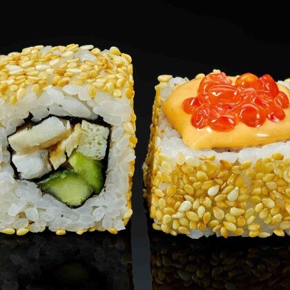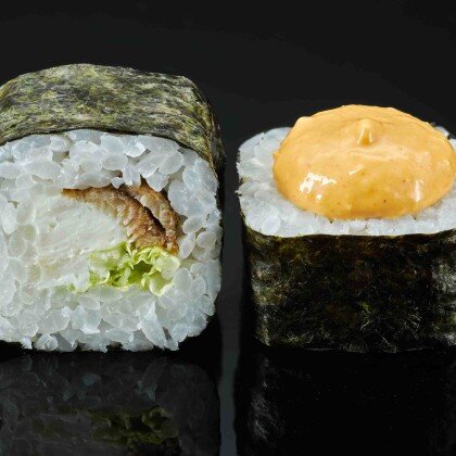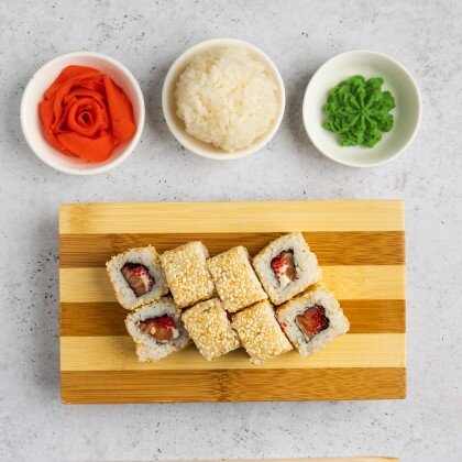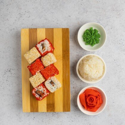 Рис, нори, угорь, кунжут, сливочный сыр, свежий огурец