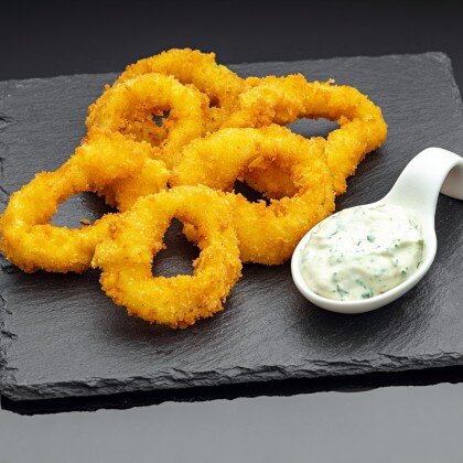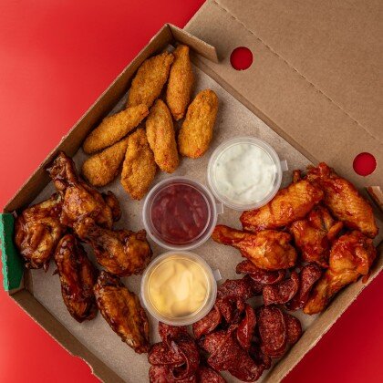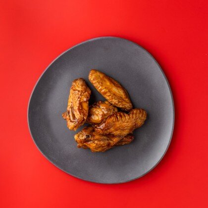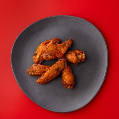 Маринованные куриные крылья в хрустящей панировке, обжаренные во фритюре. Соус на выбор включен.