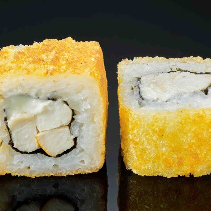 Жареный ролл: рис, нори, снежный краб, зеленый лук, соус Лава, кляр