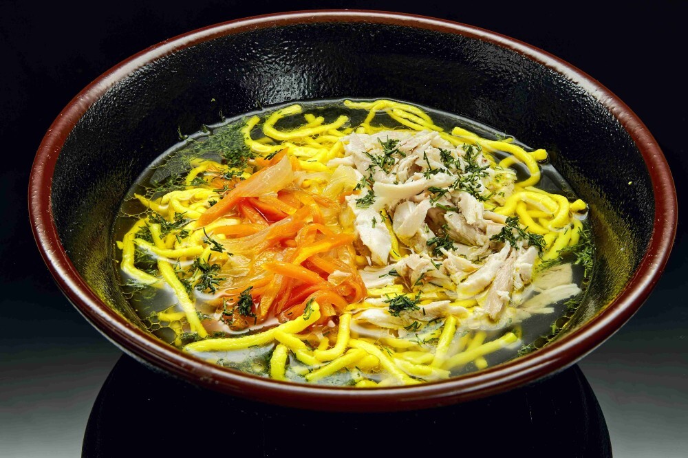 Филе куриное, лук, морковь, лапша домашняя (яйцо, мука), укроп свежий, специи