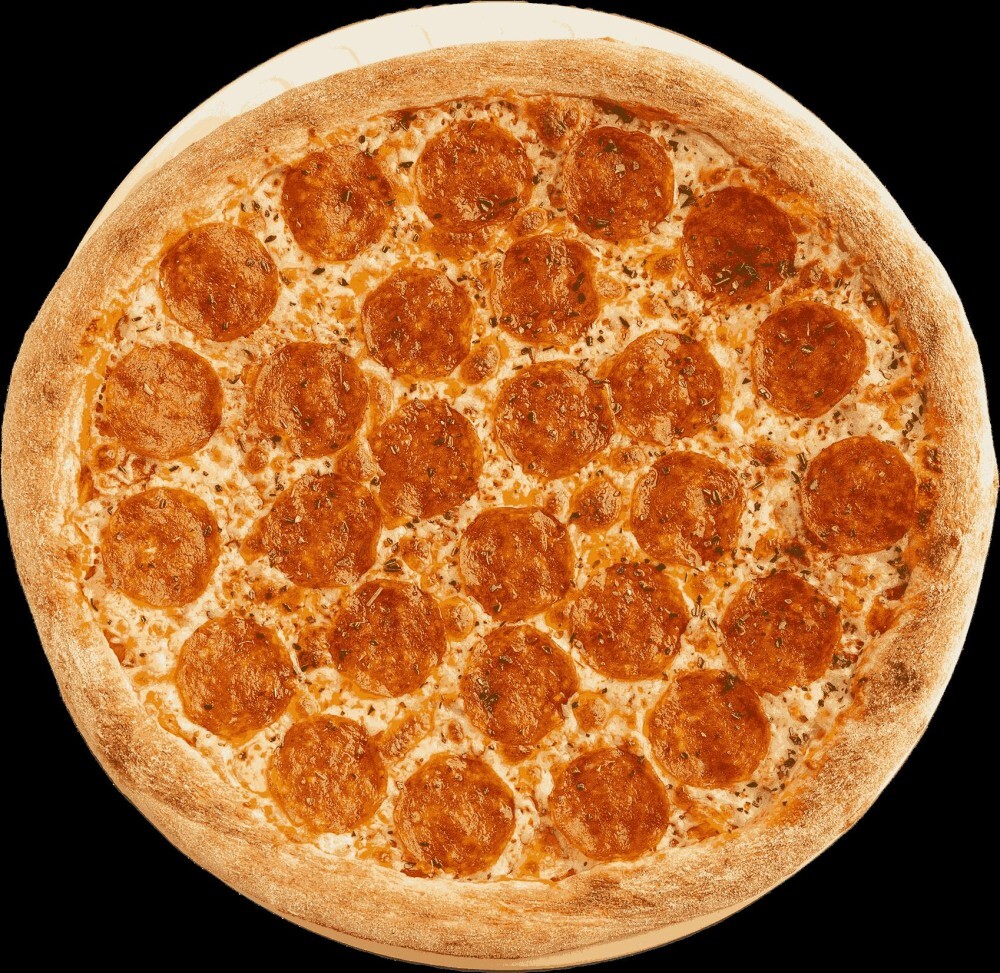 Итальянское тесто, соус Мутти, колбаски пепперони, сыр моцарелла, орегано