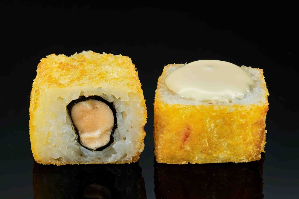 Жареный ролл: рис, нори, лосось с/м, соус Сиам, кляр