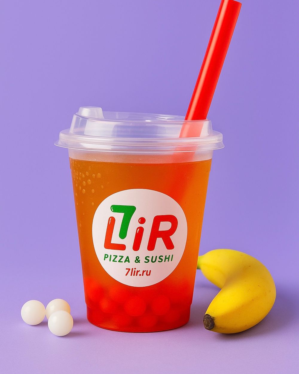 Освежающий лимонад на основе тоника, с джус-боллами "Йогурт" и сиропом "Банан", лёд. *Цвет напитка может отличаться от фото, в зависимости от вкуса.