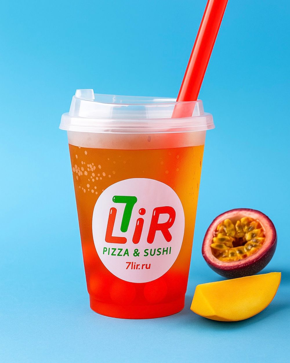 Освежающий лимонад на основе тоника, с джус-боллами "Манго" и сиропом "Маракуйя", лёд. *Цвет напитка может отличаться от фото, в зависимости от вкуса.