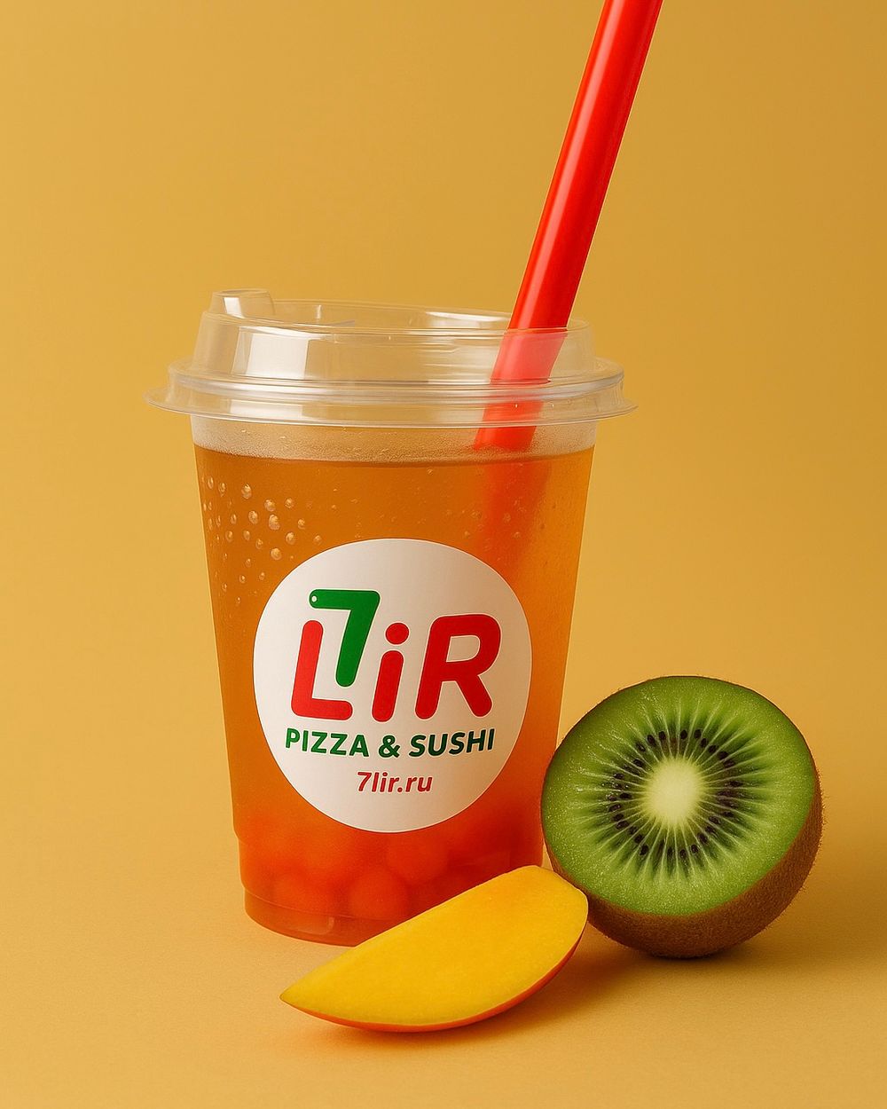 Освежающий лимонад на основе тоника, с джус-боллами "Манго" и сиропом "Киви", лёд. *Цвет напитка может отличаться от фото, в зависимости от вкуса.