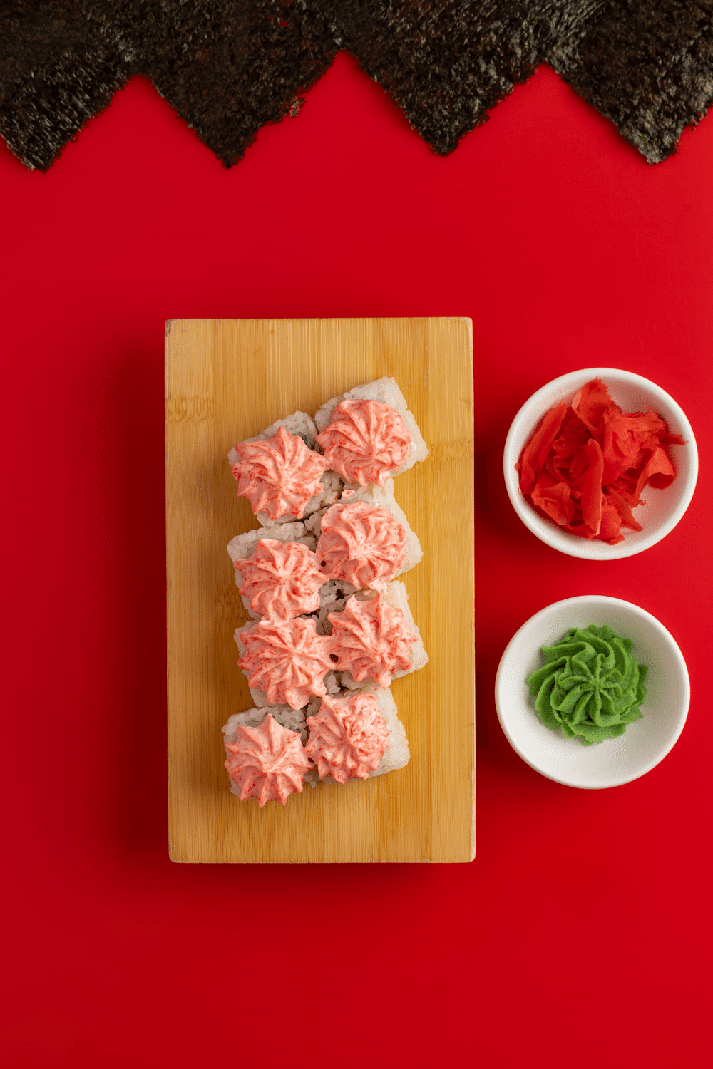 Рис, нори, лосось с/м, сыр творожный, соус Лава