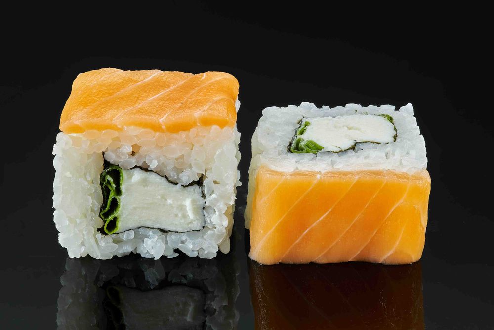 Рис, нори, лосось с/м, сыр творожный, лук зеленый