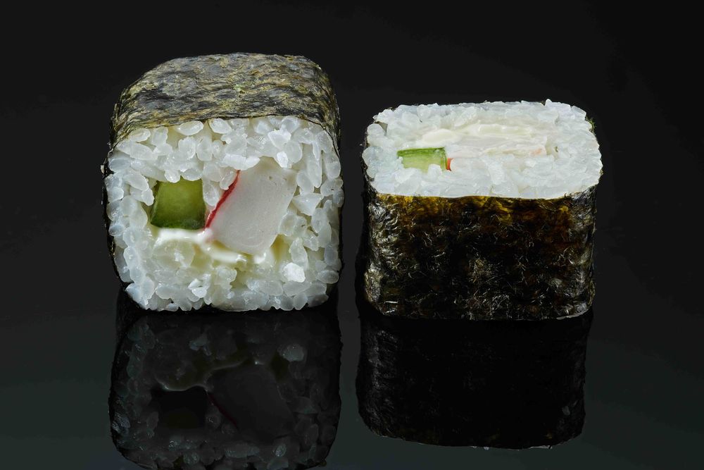 Рис, нори, сыр плавленный, огурец, крабовые палочки