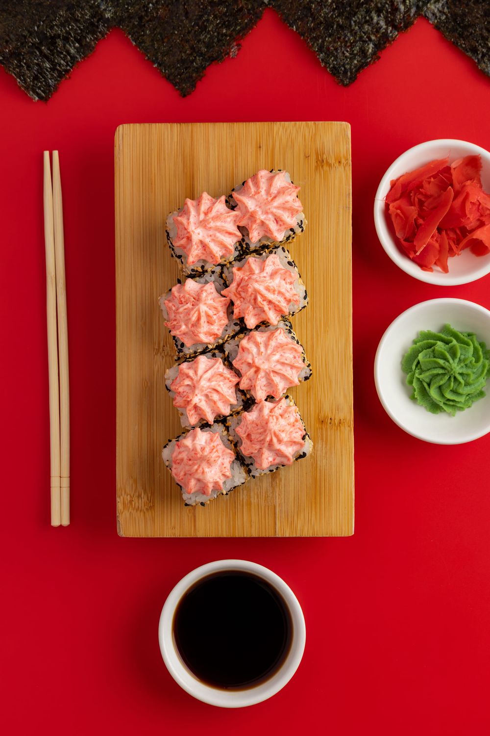 Рис, нори, лосось с/м, кунжут, соус Лава