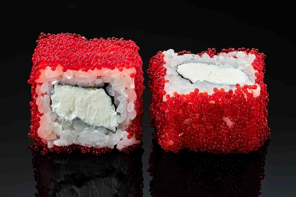 Рис, нори, сыр творожный, икра тобико