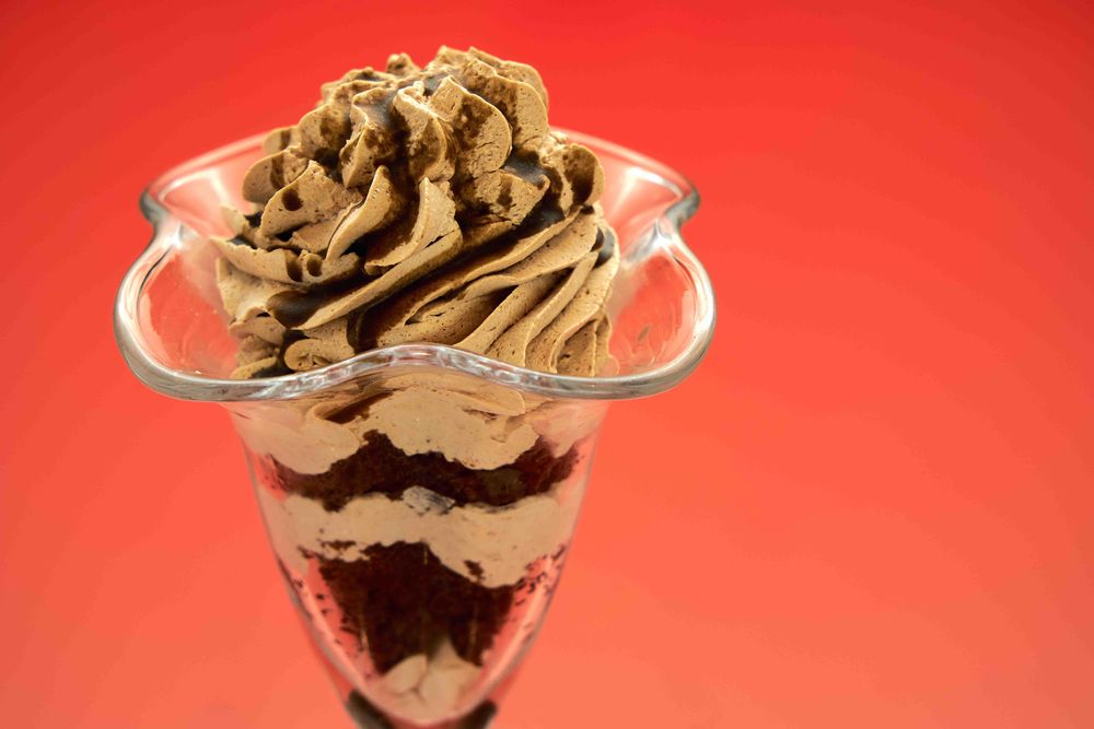 Обратите внимание - на доставку десерт упаковывается в одноразовый контейнер! Сливки взбитые, бисквит шоколадный, сахарный сироп, топленый шоколад.