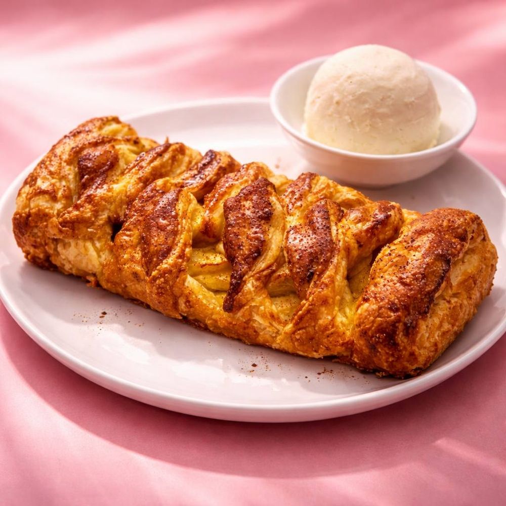 Слоеное тесто, яблоки, сливочное масло, корица, сахар, мороженое