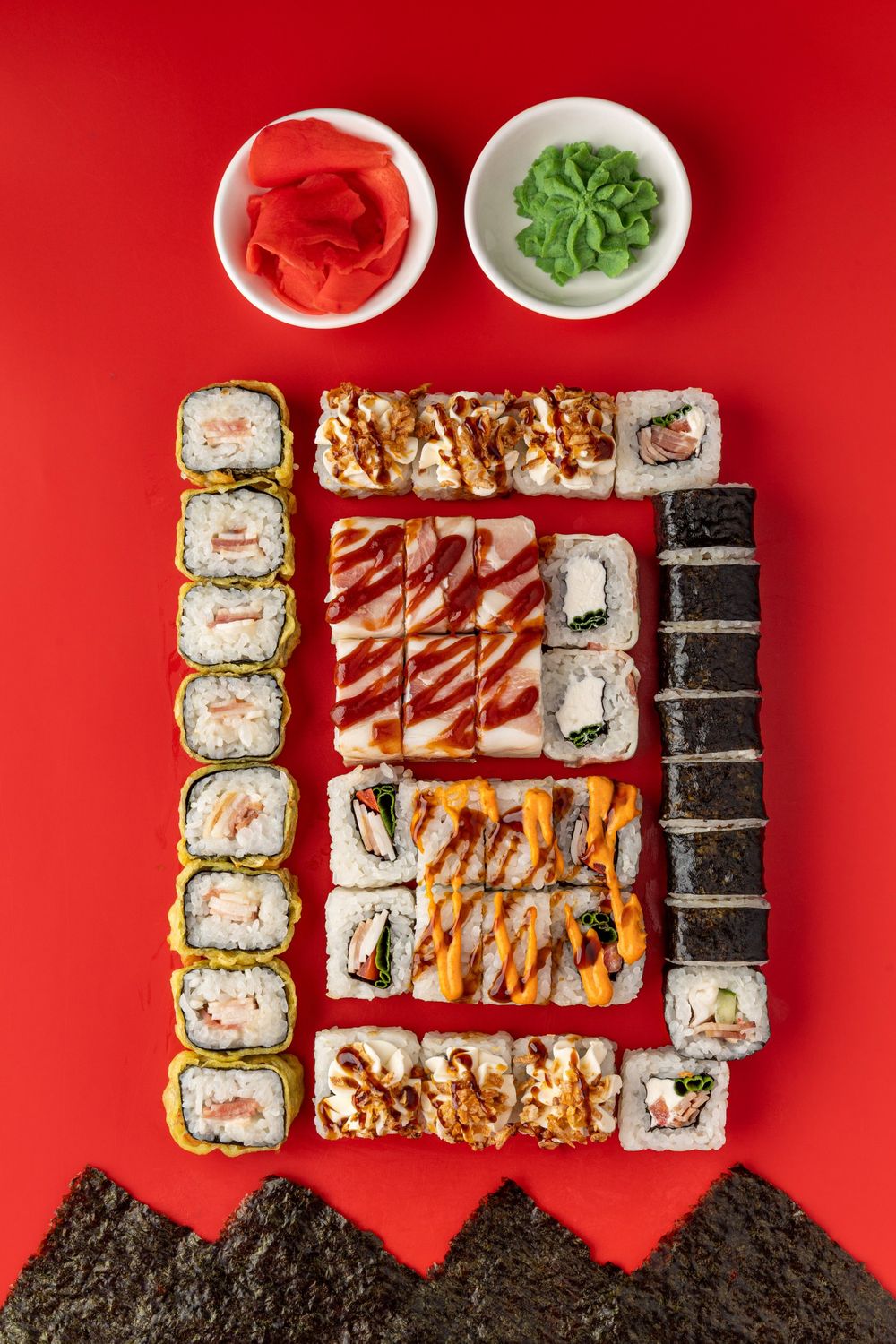 5 порций роллов (4холодных/1 горячий):