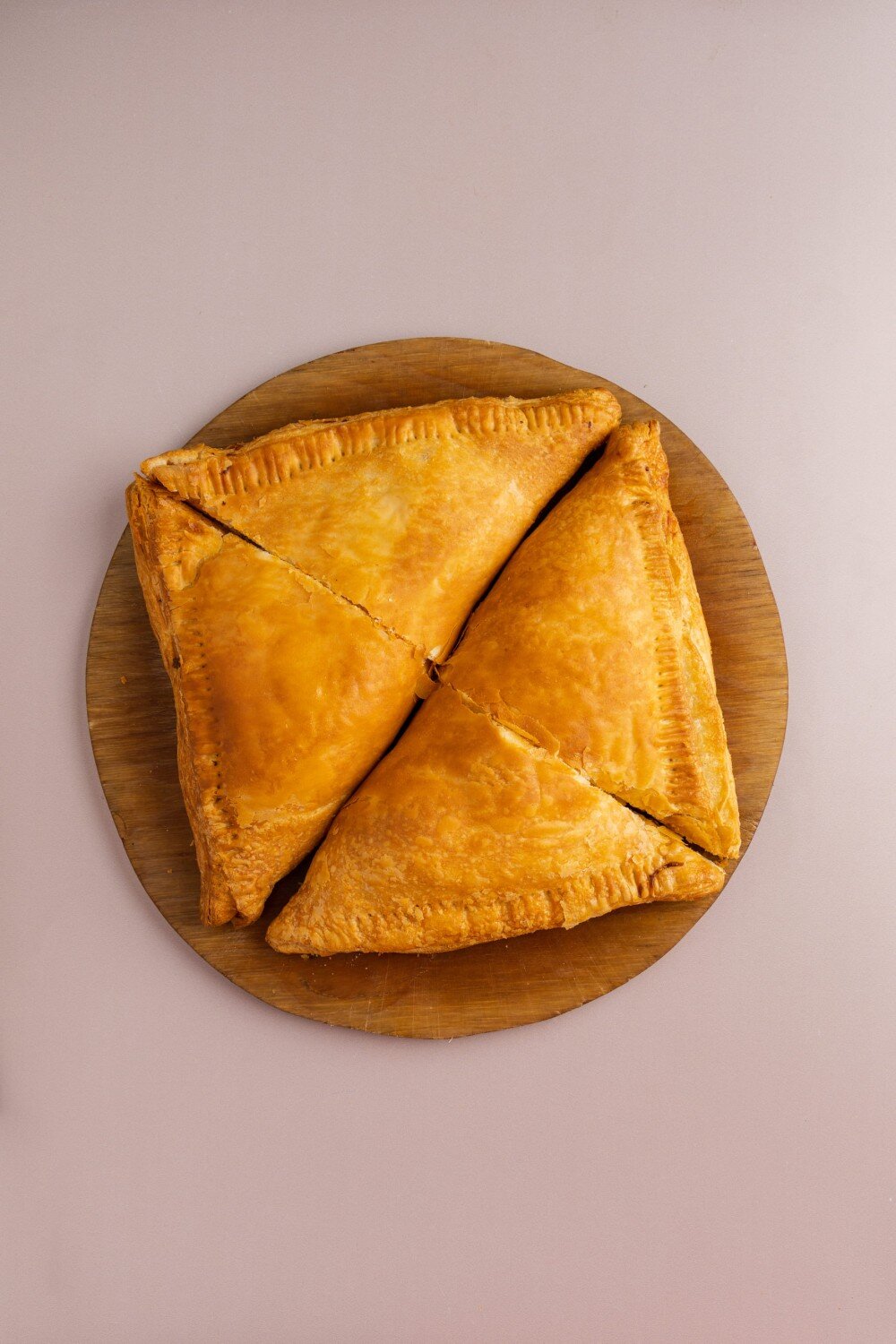 Слоеное тесто, ветчина, колбаса п/к, сыр, соус