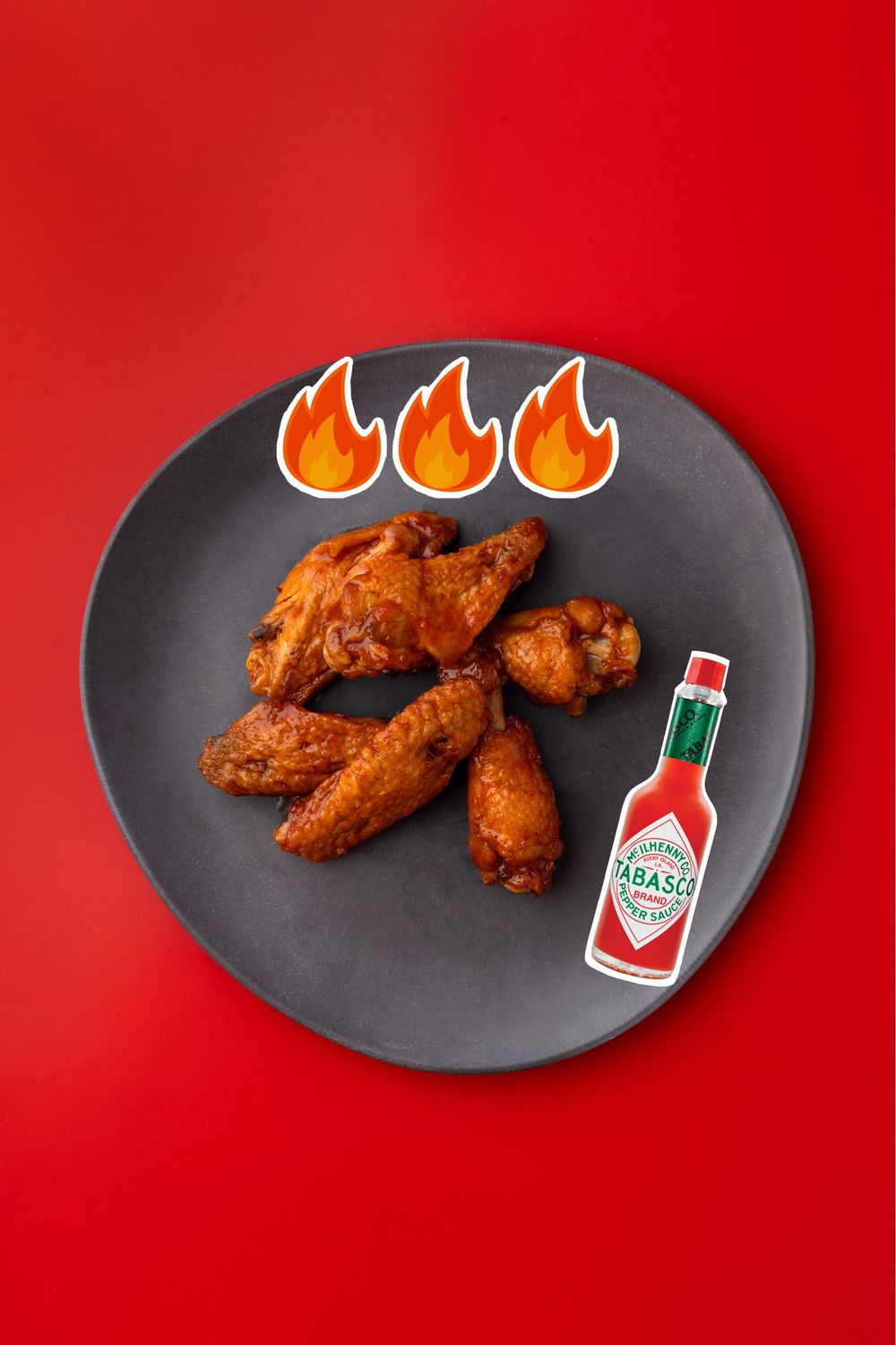 Острые жареные крылышки в соусе Баффало со специями, острый перечный соус Табаско. В порции 5 штук.