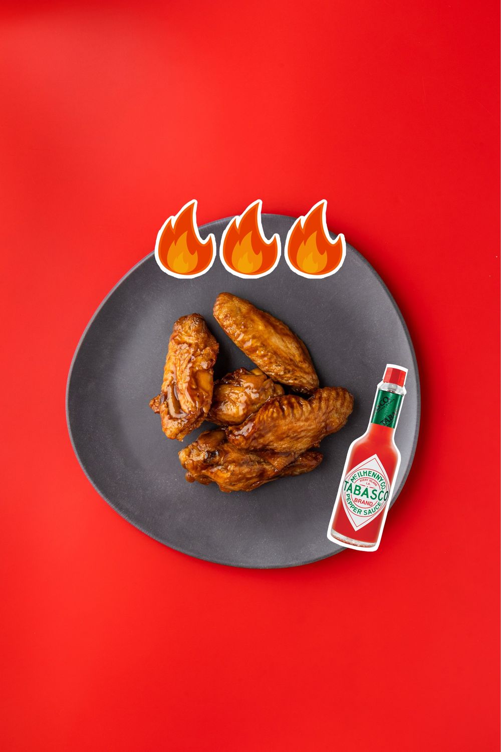 Острые жареные крылышки в соусе Унаги со специями, острый перечный соус Табаско. В порции 5 штук.
