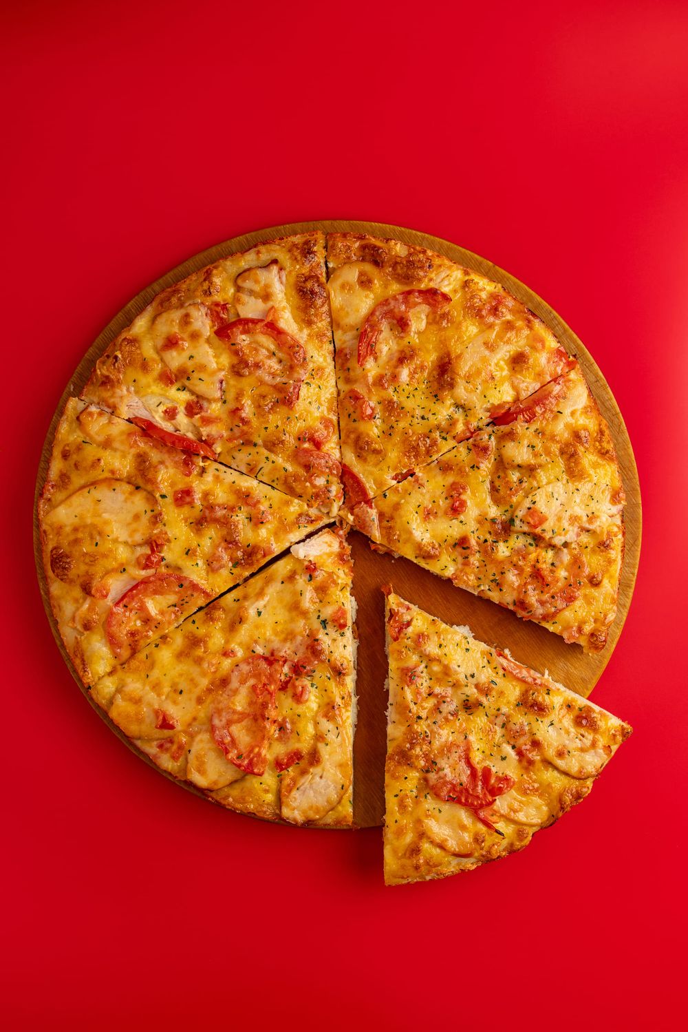 Филе куриное копченое, помидоры, сыр, сырный соус. Цена без акции - 1254 рубля.