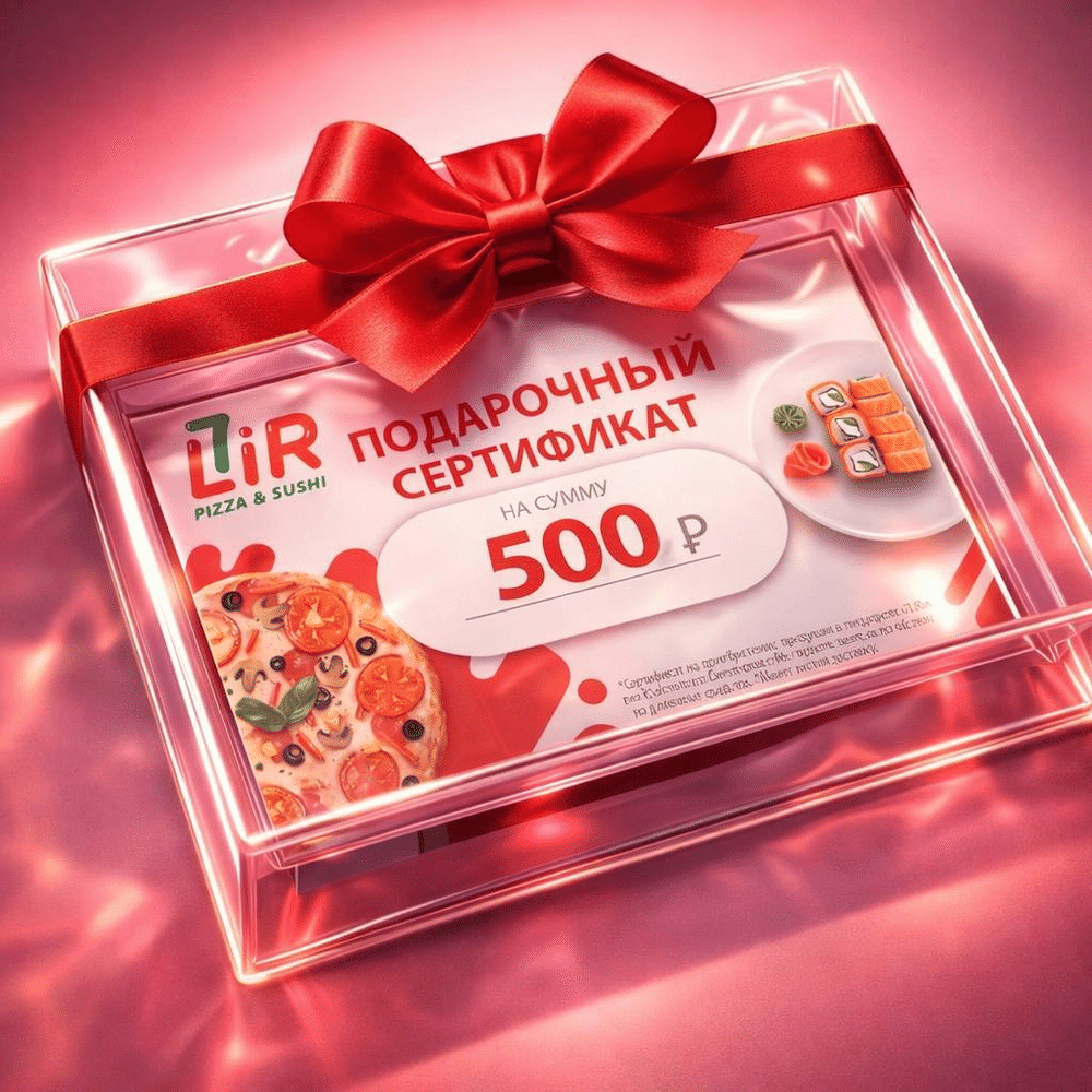 *Сертификат на приобретение продукции в пиццериях "7LiR" в г. Абакан. Не подлежит возврату и обмену на денежные средства. Может использоваться по частям. Распространяется на заказ доставки.